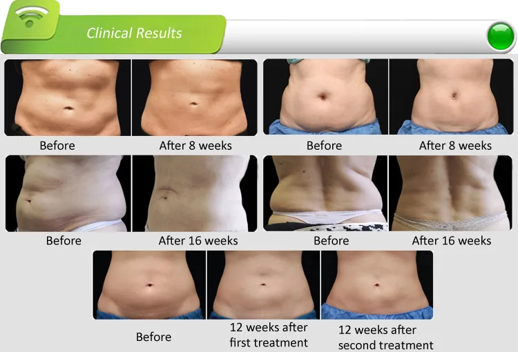 Clinical studies demonstrate that the Cryolipolysis procedure provides noticeable, measurable fat reduction in properly selected patients over the course of two to four months after the procedure. Additional procedures may be administered two to four months after the initial procedure to achieve greater fat reduction.