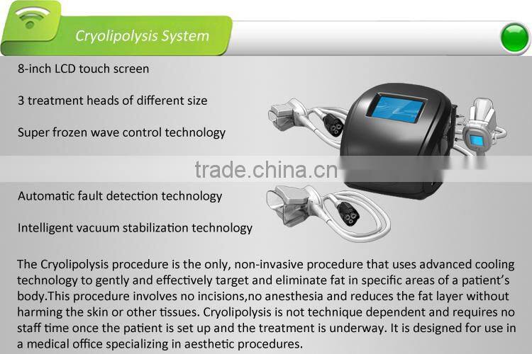 2015 Hot Selling Portable 3 Heads Cryolipolysis Fat Freezing Machine, 8-inch LCD Touch Screen, 3 Interchangeable Cryo Heads