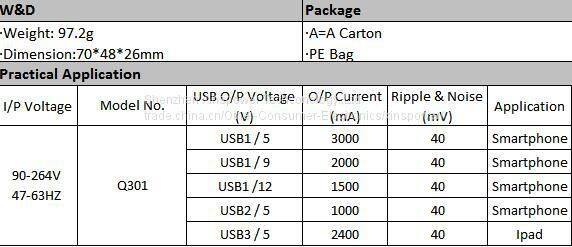 ·1st port QC3.0 + 2USB 5V, 2.4A