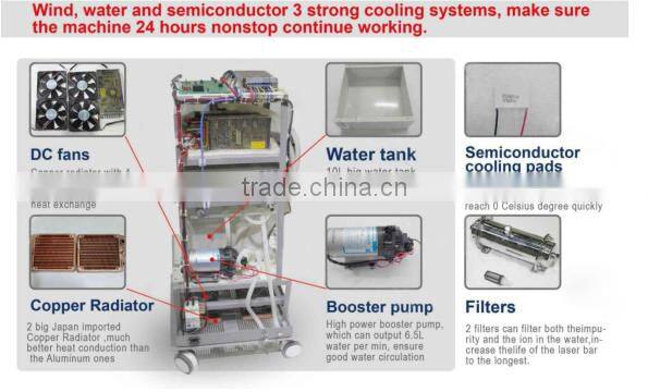 3. When laser outputs, system with special cooling technology, cool the skin and protect skin from being hurt and reach a very safe and comfortable treatment.