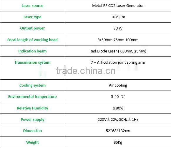 Laser unit:TEM00 module Co2 unit (best quality for the facula)
