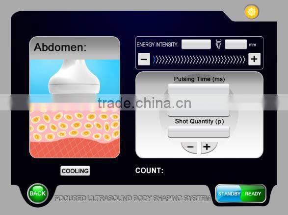 Home > Products > HIFU Body Slimming > (Hot in Europe) Focused Ultrasound System Combined Cavitation, Bipolar Radio Frequency and Semi- Conducting Cooling Technology