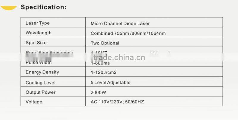 2. Long laser width, Effective for the hair follicles produce heat accumulation,Permanent hair removal