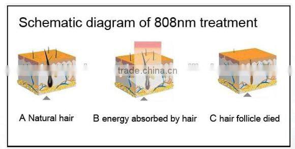 808nm diode laser –the gold standard for depilation effectively removes any pigmented hair of any skin types for the areas: face, underarm, back, leg, arm and bikini line.