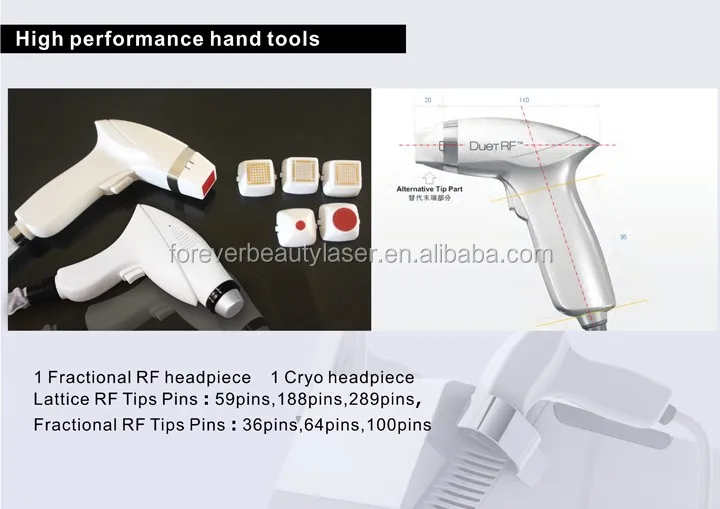 1Frational RF headpiece -1Cryo hedpiece lattice RF tips pins :59pins,188pins,289pins, Frational RF tips pins : 36pins ,64pins 100 pins