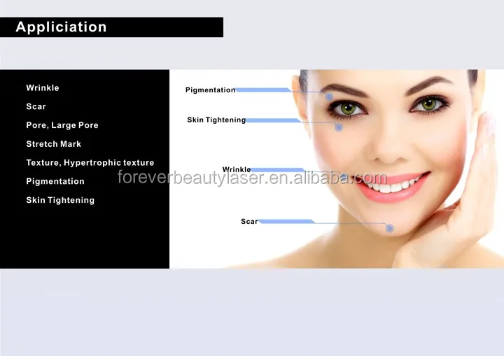 Fractional RF is mainly used to treat sagging and loose skin, severe wrinkles, rough and aging skin, large pores,pigmentation precipitation, acne, acne scars etc. It can effectively improve eye area, face, neck and reshape the face.