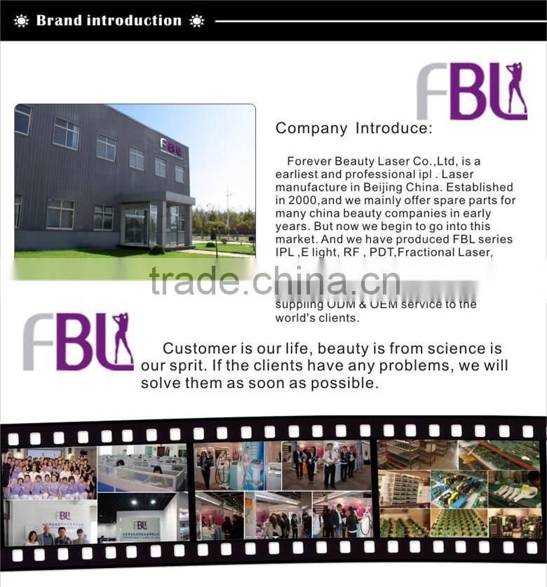 FBL beauty machine manufacturer Forever Beauty Laser Co.,Ltd,is a earlist and professional ipl.laser manufacture in Beijing China.Established in 2000,and we mainly offer spare parts for many china beauty companies in early years.But now we begin to go into this market.And we have produced FBL series IPL,E light,Rf,PDT,Fractional Laser.Vacuum Roller,Diode Laer Hair Removal,I lipo Laer,Vein Removal and Micro Needle Fractional RF etc.Also,We are suppling ODM&OEM service to world's clients.()