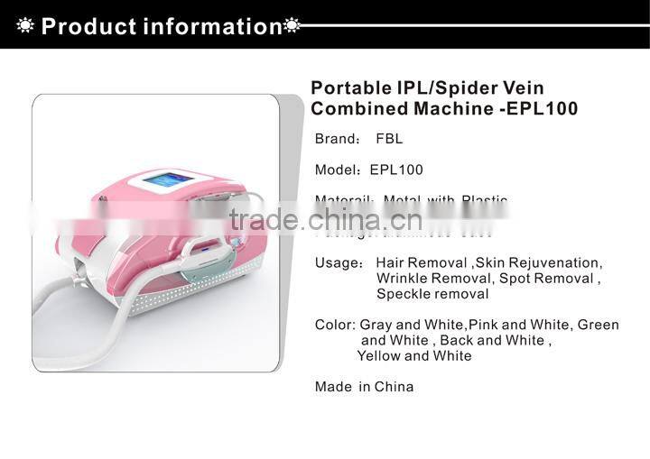 | Model Number | EPL 100 | Feature | Hair Removal, Pigment Removal, Pore Remover, Skin Rejuvenation, Skin Tightening |