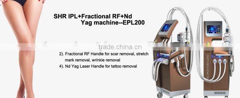 2016 Multifunctional SHR IPL nd Yag Laser Microneedle Fractional RF hair removal scar removal machine