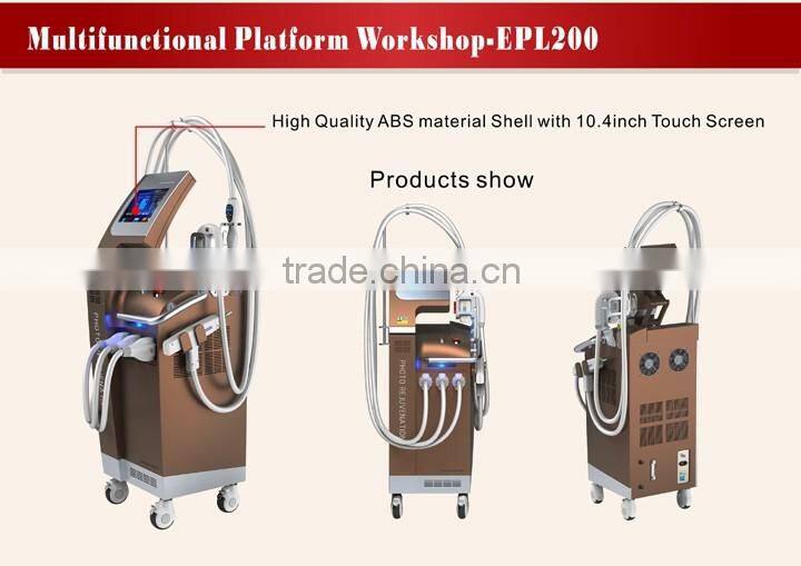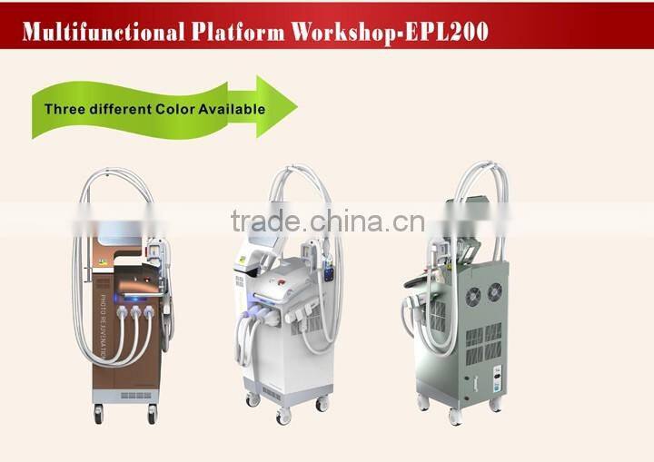 What is the configuration of this Hot Sale Hair Removal Tattoo Clearance Wrinkle Removal 3 in 1 Multifunction Device EPL200?Well, It is 2104 newest technology combined SHR IPL/ND YAG Q_SwitchLaser/Fractional RF 3 in 1 Machine; just one machine can meet your entire clinic treatment requirement.