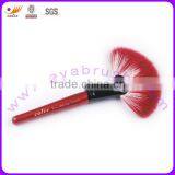 Red Goat Hair Makeup Fan Brush With Black Alu-ferrule and Wooden Handle