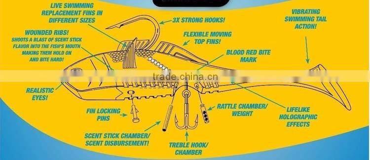 | Features | Mighty Bite is the only proven 5-sense fishing lure system. Mighty Bite looks, smells, sounds, feels, tastes and actually swims like a wounded baitfish. Works for all predatory Fish. Every predatory fish craves an easy meal, and nothing is easier than a wounded baitfish. Forget all other lures that work on one or two of the fish's senses. The Mighty Bite is the only proven 5-sense fishing lure system, engineered to ignite a fish's DNA triggered response, causing it to strike, bite hard and get hooked. The special design also involves a bite mark in their ribs. Wiggle swim baits around in the water and it sounds like a fish. It feels like a fish, especially after you pull it out of the water. The scent sticks make the swim baits smell like a wounded bait fish. And for the final test....yep, even tastes like a fish. |