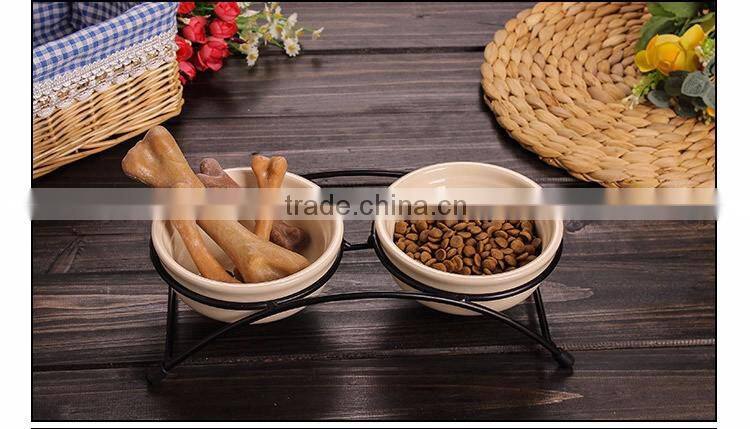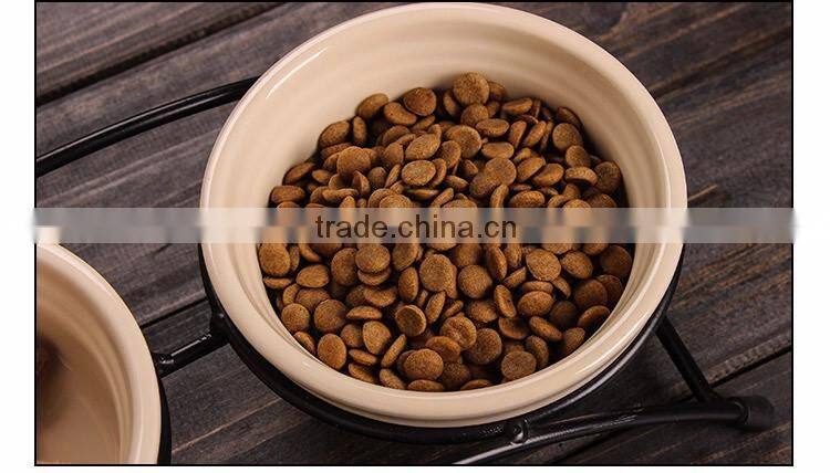 Promotional Wholesale Double Pet Food Bowl Cartoon Ceramic Pet Bowl