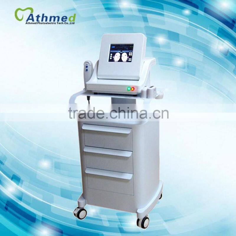 HIFU beauty system uses an advanced new highintensity focused ultrasound technology(HIFU for short). The machine will release highly concentrated focus sonic energy which can directly penetrate into the skin and deep SMAS facial skin tissue that can stimulate and renew skin's collagen and thus tighten the skin and remove wrinkles. It successfully achieves a quite good result of skin tighening and face lifting without any help of invasive surgeries.