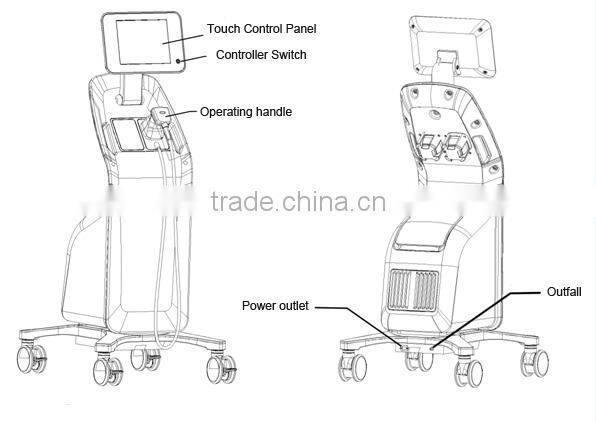 High Intensity Focused Ultrasound penetrates focused and volumetric ultrasonic energy at precise depth (13mm) in subcutaneous fat layers targeting fat tissue causing a non-thermal effect. The surrounding structures such as the epidermis, blood vessels and nerves will not be damaged. Meanwhile the metabolized contents (triglyceride, fatty acid) of cells will excrete outside body automatically through blood circulation and lymphatic drainage without harm to the human body.