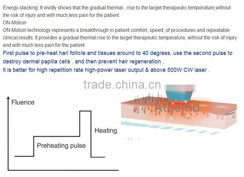 2. German Tech--all the core components are imported , all same supplier with ALMA LASER. Germany micro channel laser bar arrays, with output 500 watt power, effective, good quality.