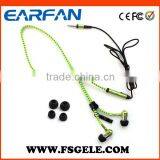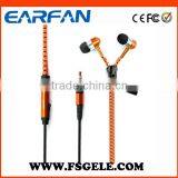 Zip Headphone Wire Zipper Earphone with High Quanlity