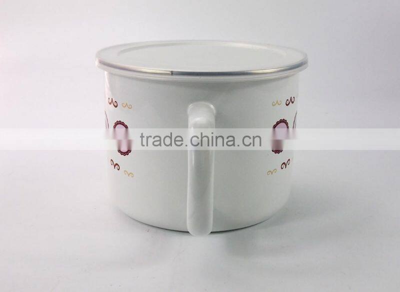 HIGH QUALITY CUSTOM ENAMEL MUG WITH HANDLE AND PLASTIC LID CHOCOLATE DESIGNS