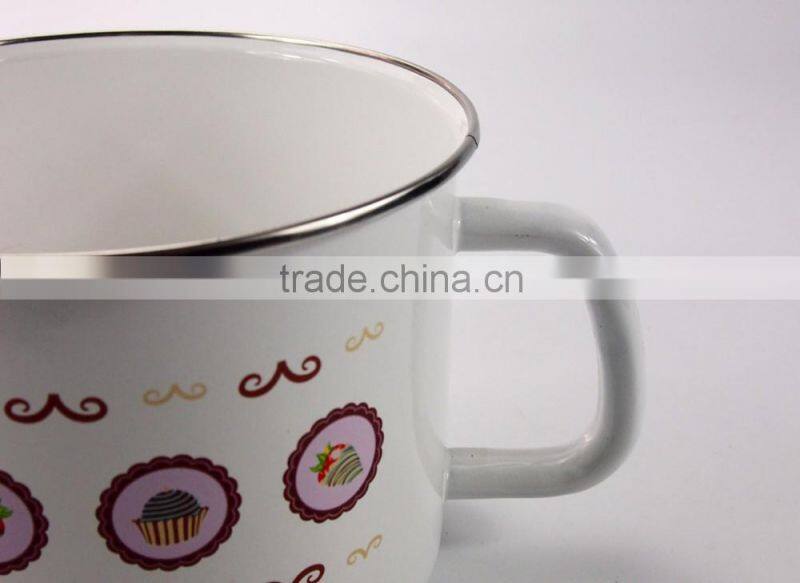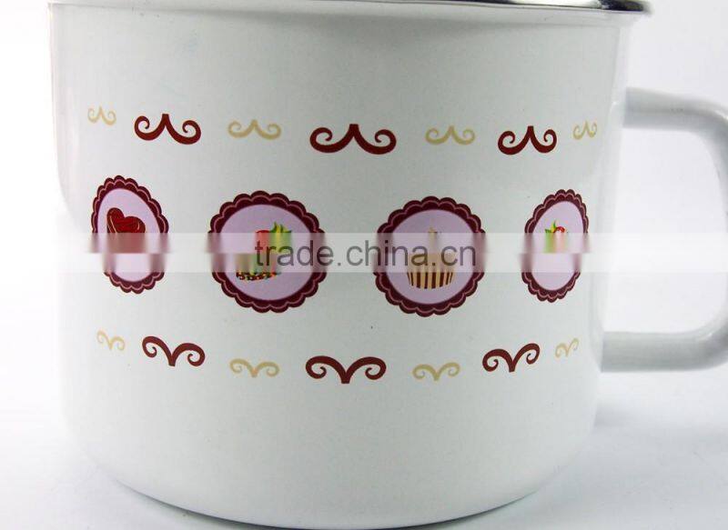Rim Enamel Cup Flower Logo Printing Custom Enamel Mug