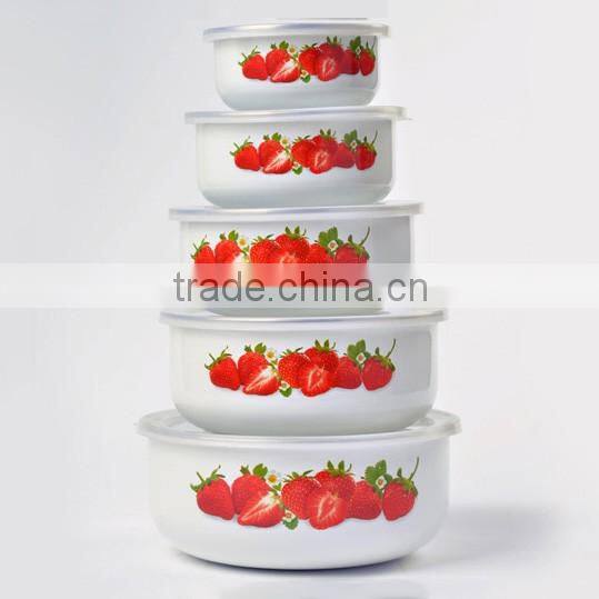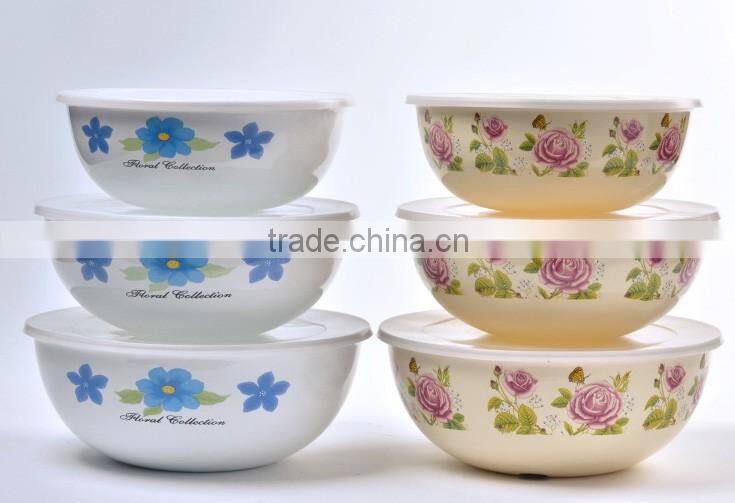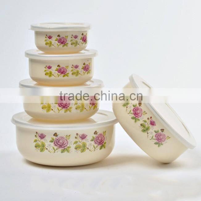 5Pcs Flower Decal Printed Enamel Salad Mixing Bowl Set Food Storage Container