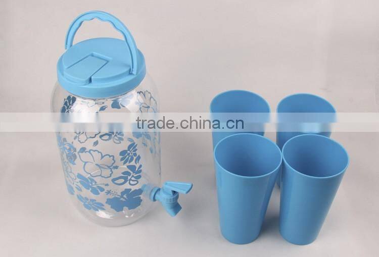 4L Glass Water Dispenser With Tap Beverage Juice Dispenser With Cups