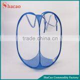 Blue Folding Laundry Basket Mesh Fabric for Laundry Bag With 2 Handles and Pocket