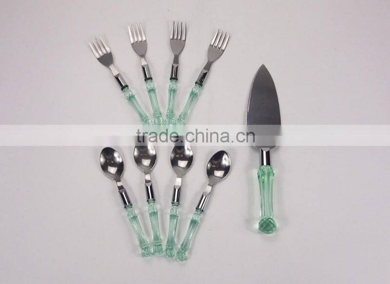 Green Crystal Handle 9Pcs Stainless Steel Flatware Set