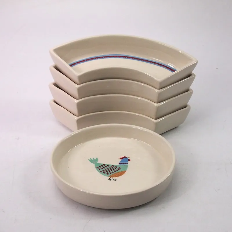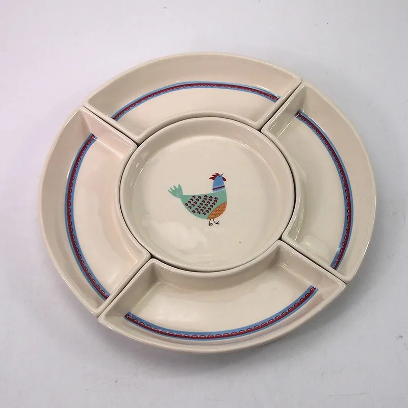 Hotel White Cheap Ceramic Plates Round Ceramic Dishes With Animal Pattern Painting Divided Dinner Plates For Restaurant Ceramic