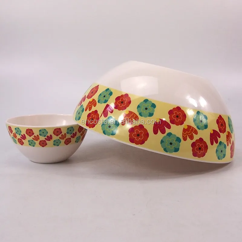 Colorful Flower Euro Food Stardard Set Of 2Pcs Plastic Salad Bowl Set