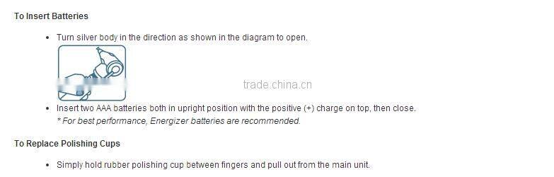 - After polishing, clean the product by wiping its body. Then remove the polishing cups and rinse them under running water. Do NOT immerse product in water.
