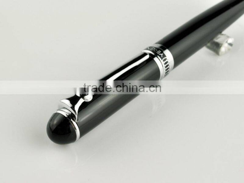 Valin High Quality Black Metal Fountain Pen With Crystal Clip