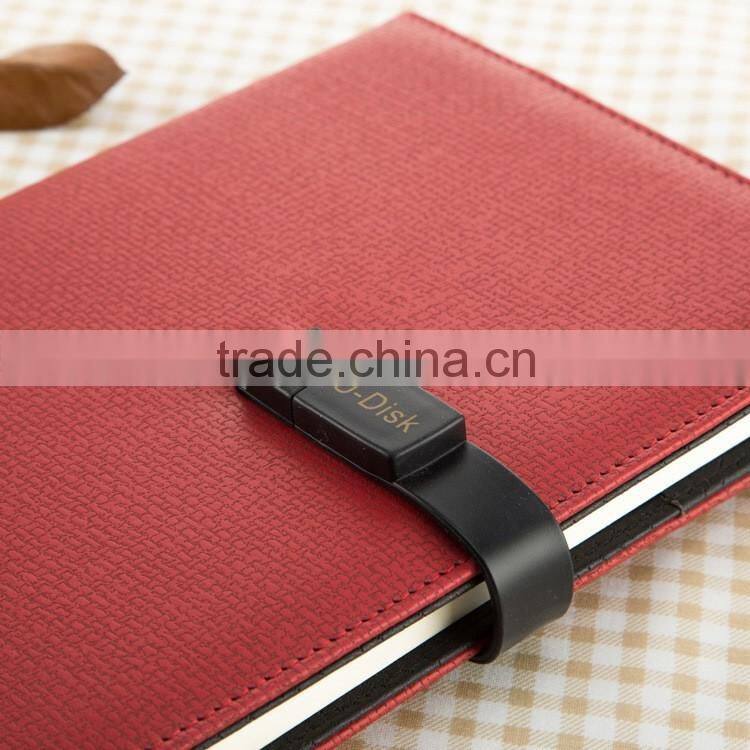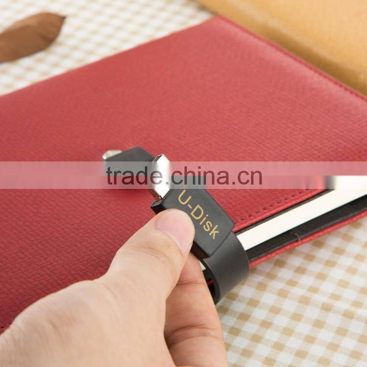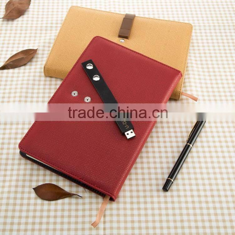 2016 USB PU Leather Notebook Luxury Business Meeting Organizer Usb Notebook With 8G USB and 10000mAh Power Bank as Best Trave
