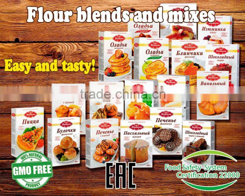 Cooking method: add 110g of soft butter or margarine and 2 eggs to the package content, mix thoroughly to achieve homogeneous mass, roll out into 1cm layer and form cookies. Put the dough on an oiled or floured baking sheet. Bake at 170-1900С