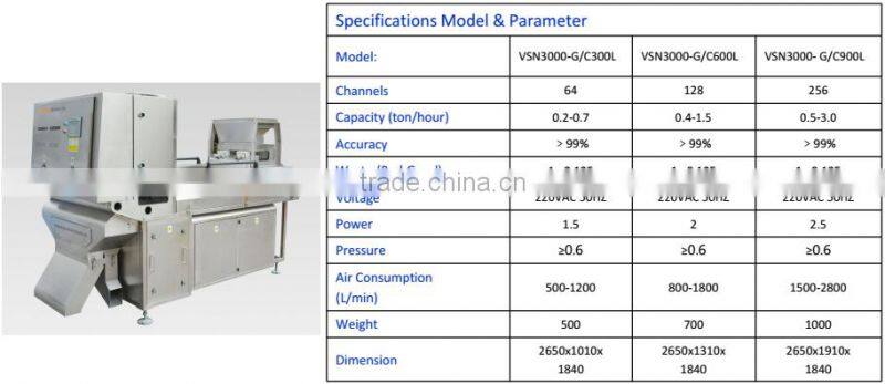 2016 Hot Sale! VSN3000-L600G Monochrome Peeled Garlic Belt Color Sorter With Blue Light