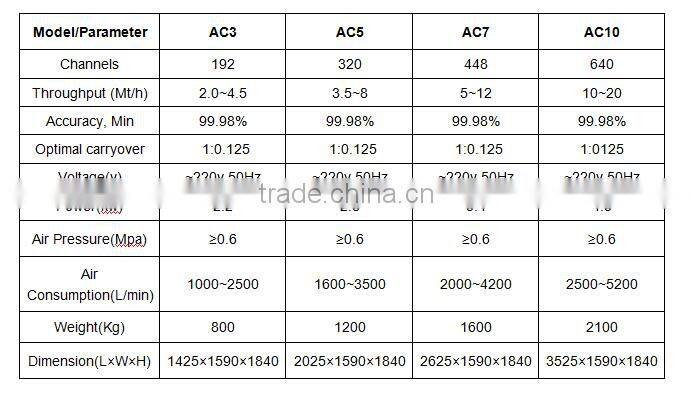 Now main products of our company include series of rice color sorter, grains color sorter, dehydrated vegetables color sorter, and Plastics color sorter, which can meet the requirements of domestic and international market.