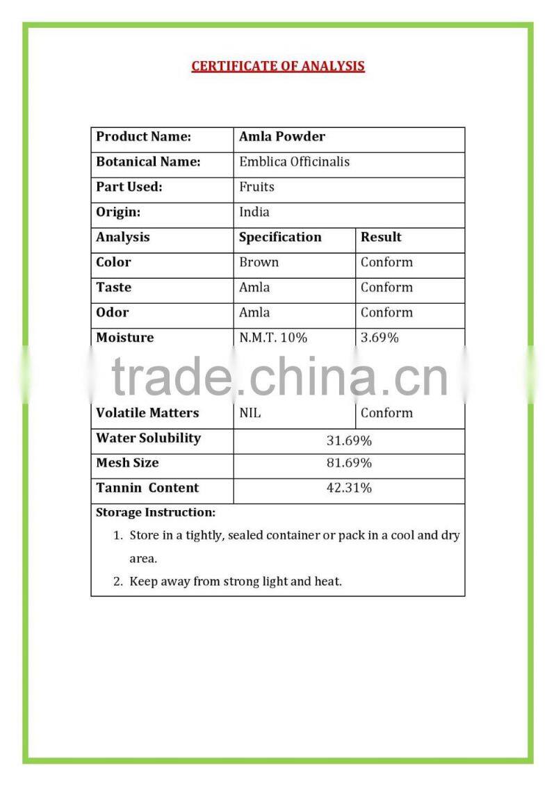 Amla Powder, also known as Indian Gooseberry Powder or Emblica Officinallis is world known natural herb for hair conditioning, making hair treatment and ayurvedic products. Our Amla Powder is 100% pure and natural which comes with no side effect. We export our Amla Powder to various cosmetic manufacturers across the globe.