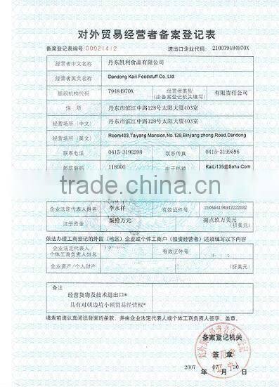| Company Name: | DANDONG KAILI FOODSTUFF CO.,LTD. |