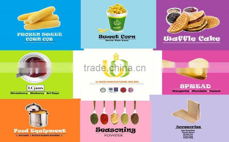 With this opportunity, we would like to introduce our products NON-CUT FROZEN WHOLE KERNEL SWEET CORN to your esteemed organization. LC MAIZE MANUFACTURING SDN BHD was transferred from the elder to the 2nd generation of the family. We were one of the largest producers in Malaysia and represented by analysis, Halal Certificate, GMP, HACCP, ISO 22000:2005, etc. Our success lies in our ability to consistently provide high quality fresh sweet and frozen whole kernel corn, rich in nutrition and natural taste, with NO ADDED PRESERVATIVES, FLAVOURINGS or COLOURS.