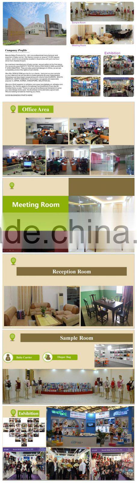 Jinjiang Becute Baby Products Co.,Ltd was founded in 2008, it is a professional manafacturer and exporter of baby carrier, diaper bag.