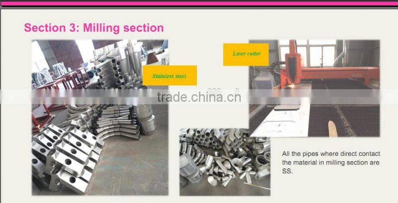 Stainless steel pipes in milling section.