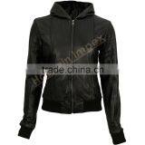Women's Winter Leather Jacket With Hoodie