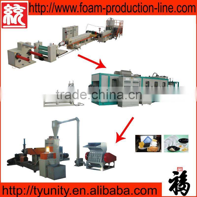 3. Plastic recycle machine: recycle waste products to granules, the can mix with new material and put into PS foam sheet extruder again