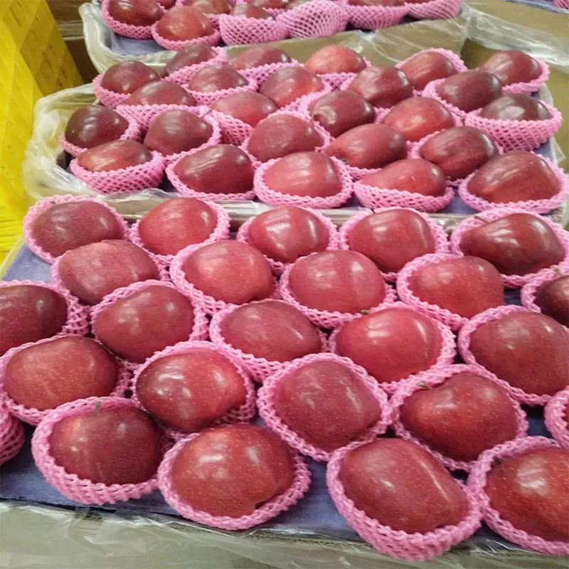 Inner packing with paper tray,foam net,plastic bag and each red fresh huaniu apple has our laber.
