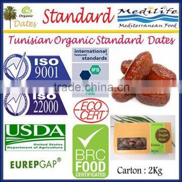 Tunisian Organic Standard Dates. Organic Standard Dates "Deglet Noor" Category, Organic Standard Dates Fruit 2 Kg Carton.