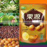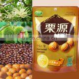 Our raw material is all produced at Yanshan Mountains in Hebei which is China’s best quality chestnuts also called East-to-bejing chestnuts. Which is famous by fragrant and sweet taste, uniform moderate size and richly containing of Vitamin A, Vitamin B, Vitamin E and many kinds of minerals such as Selenium,Iron etc.due to the rich minerals in the soil and the unique climate in Yanshan Mountains. Since ancient times chestnut is famed as “King of nuts". Liyuan products take the high-grade East-to-beijing chestnuts as raw material, picked at the appropriate time, selecting attentively, stored in air-conditioned refrigerator, produced by automatic entire sealed air-treated technology adoption. Doubly assured the quality as well as the taste. During our manufacture process no any additive or preservative material were added we guarantee the 100% natural taste and quality. It is healthy for you and your family!