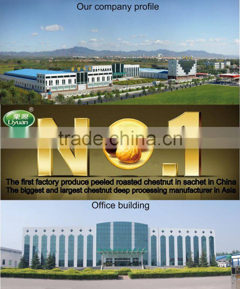 Hebei Liyuan foods Co., Ltd established in 1999, mainly dealing with East-to-Beijing Chestnuts and deep processing of cereals and other agricultural by-products. Liyuan is regarded as the largest professional chestnuts processing enterprise in China and the leading of chestnut industry, concentrating on green environmental protection, sci-tech, export-oriented and agriculture industrialization.