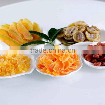 | Description | Fresh sound ripe fruit which has been peeled, sulfiting, washing , boiling , syrupping and process by hot air dehydration. Dehydrated fruit is free flowing, non sticky and clump free. |