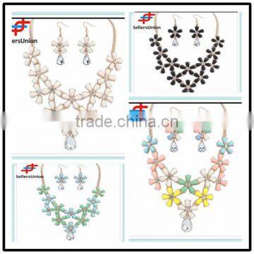 No.1 Yiwu Exporting Commission Agent Wanted Flower Designs Fashion Artificial Statement Necklace and Earrings Sets for Girls
