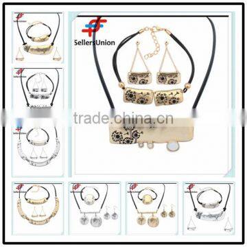 No.1 yiwu exporting commission agent wanted pu black long chain necklace/earrings/bracelet jewelery set