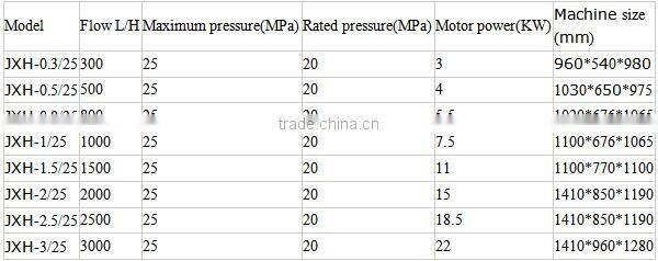 etc parts. The machine is vertical positioned, electromotor installed inside the rack, transmission case mounted on the rack, pump body connect with the transmission case. Electromotor drive the transmission case gear shaft bent axle through the belt, linkage slider drive the plunger make reciprocating motion. The plunger inside the pump body make the pumping and compressing movement, the pressure formed through combination valve control feed liquid. When the machine used as homogenate, it should assemble the homogenizer, the feed liquid press in the homogenizer, after homogenizing valve’s effect, the feed liquid get fully homogeneous refinement. When the machine used as high pressure pump, it should assemble the high pressure over flow device, the feed liquid press in the outlet through pump body, when the pressure exceed the setting range, the overflow valve will open automatically, form the inside discharge, when the pressure under the setting value, the overflow valve will close automatically, so the feed liquid could convey safely in the setting pressure range.